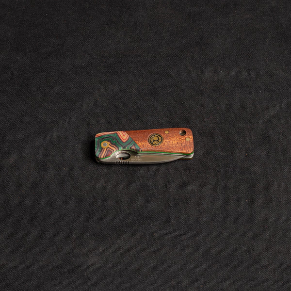 Bu özel üretim çakı, mükemmel denge ve estetik bir tasarım ile benzersiz bir kullanıcı deneyimi sunar. Paduk ağacının sıcak tonları, G-Mikarta ile buluşarak hem görsel olarak çarpıcı bir izlenim bırakır hem de güçlü bir dayanıklılık sunar. İçten kilit sistemi, güvenli ve kolay kullanım sağlarken D2 çelik bıçağı keskinliğini uzun süre korur. Bu çakı, hem günlük kullanım için mükemmel bir seçenek sunarken hem de açık hava etkinlikleri için ideal bir yardımcı olacaktır.