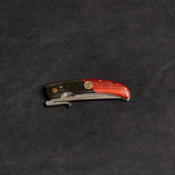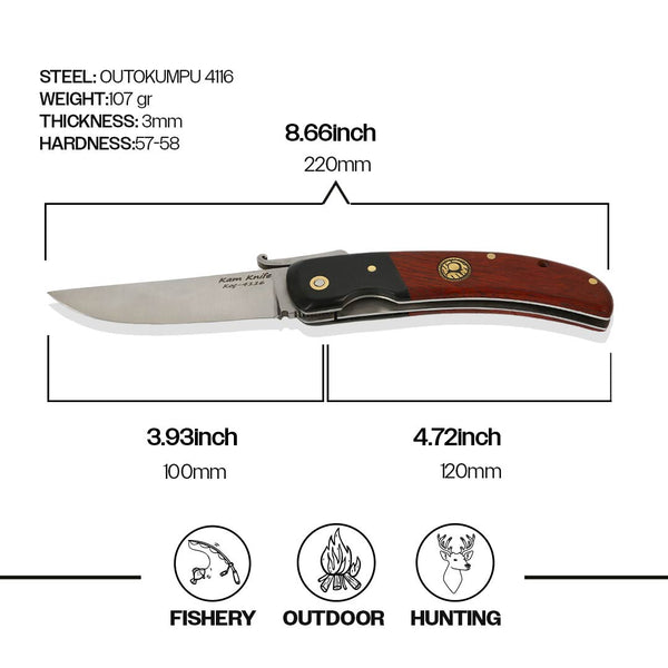 Kabza: Paduk Ağacı ile neme ve suya dayanıklı, antibakteriyel siyah kompakt mikarta kombinasyonudur. İp bağlama halkası ve pirinç logo mevcuttur. *Kilit mekanizması,namlu ile aynı çeliktir, birlikte ısıl işleme tabi tutulmuştur. Bu şekilde namlu ile birbirini aşındırmayan bir sistem oluşturulmuş ve aynı zamanda sağlam bir kilit mekanizması elde edilmiştir.