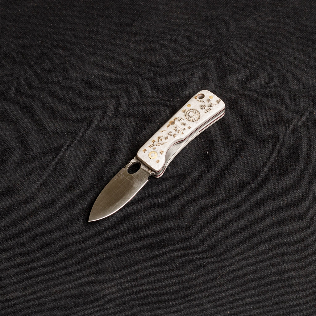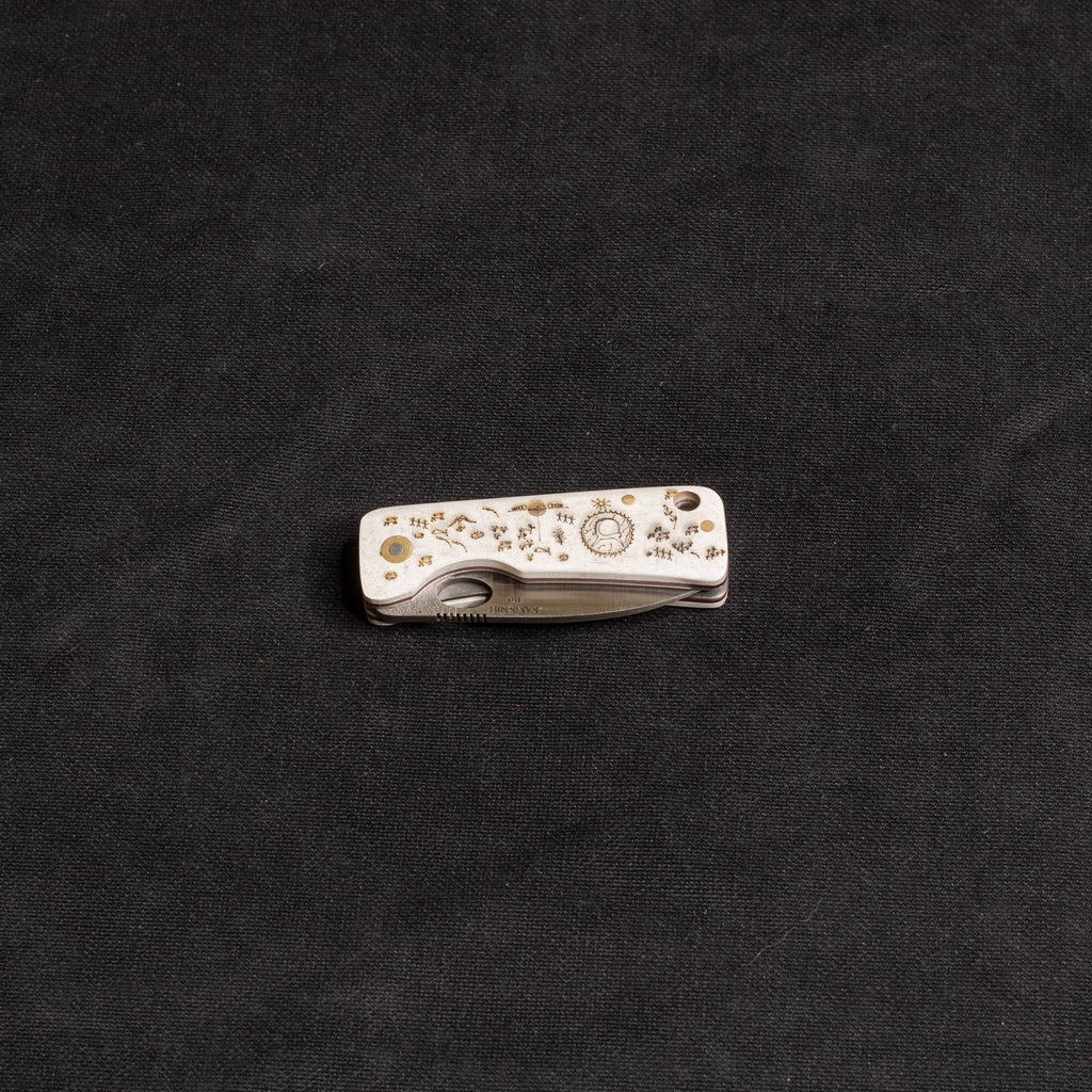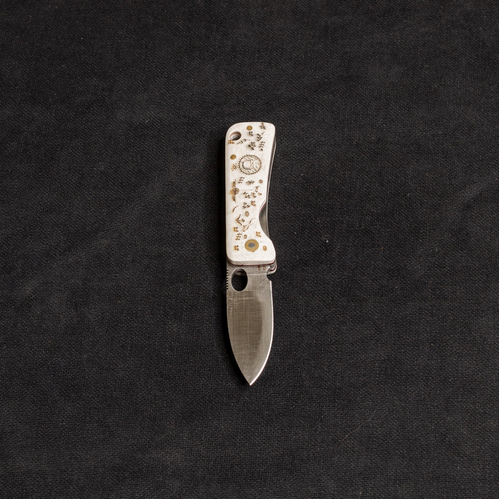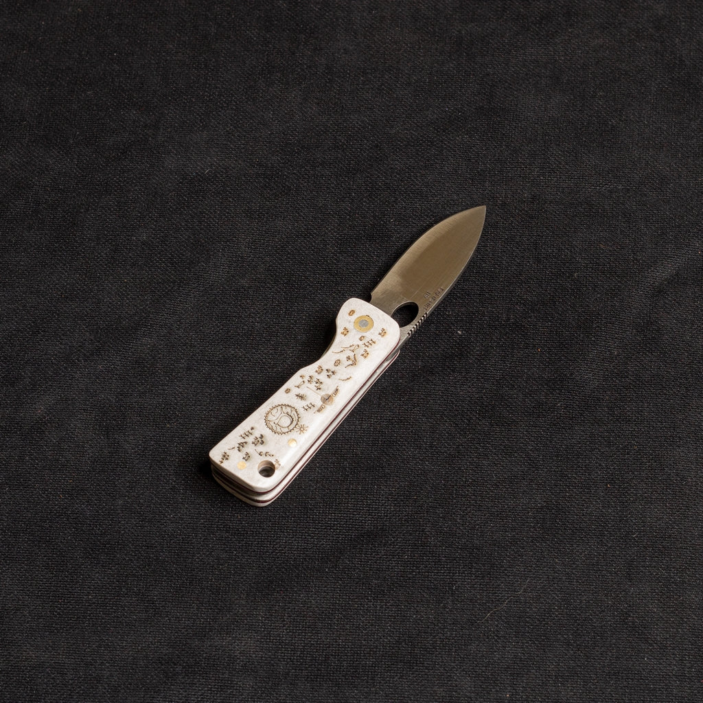Kam Davulu İşlemeli Beyaz Mikarta İçten Kilitli Çakı - J10 - D2